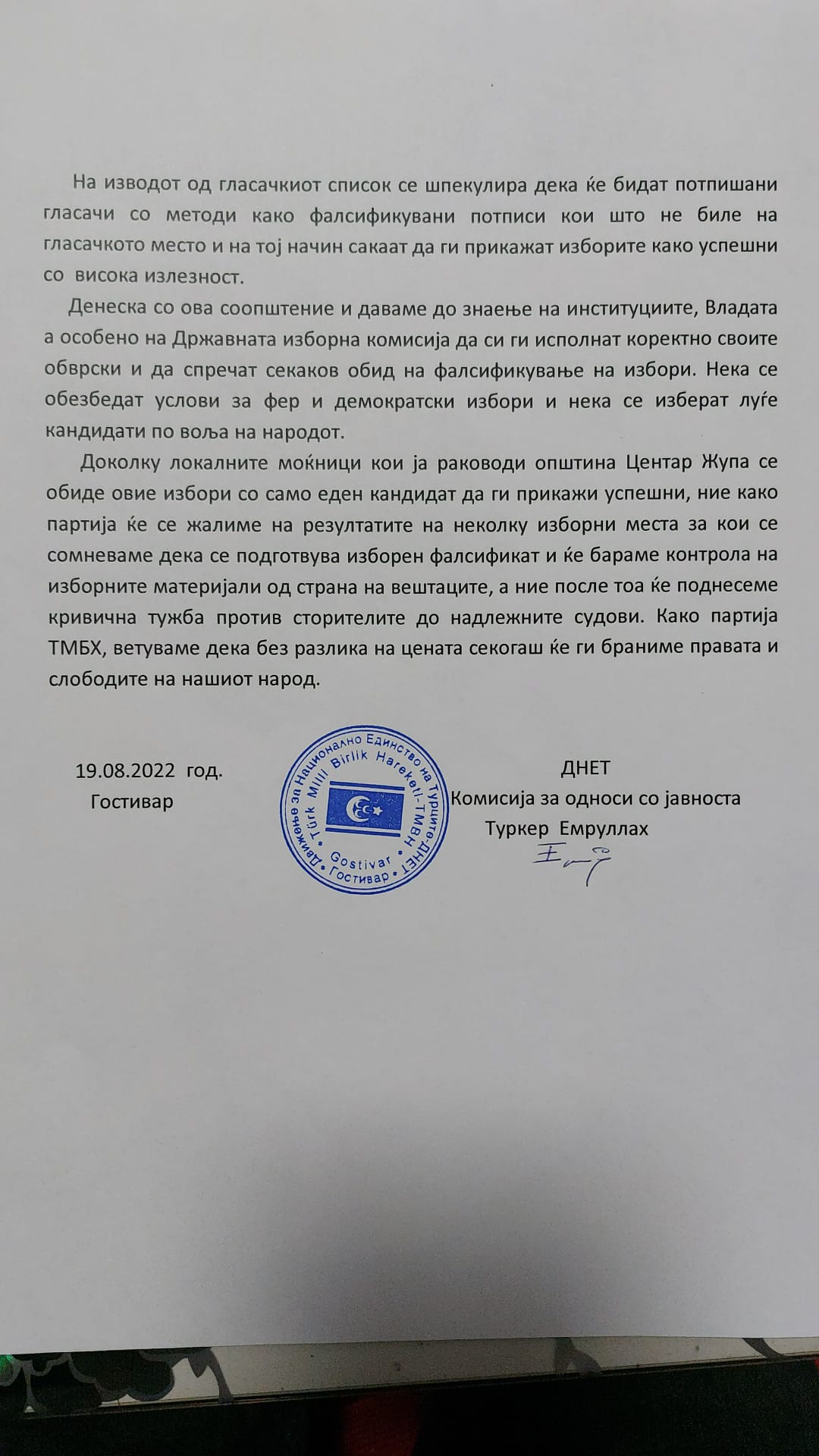 Годишен Извештај За Движење на Нациоанлно Единство на Турците ДНЕТ