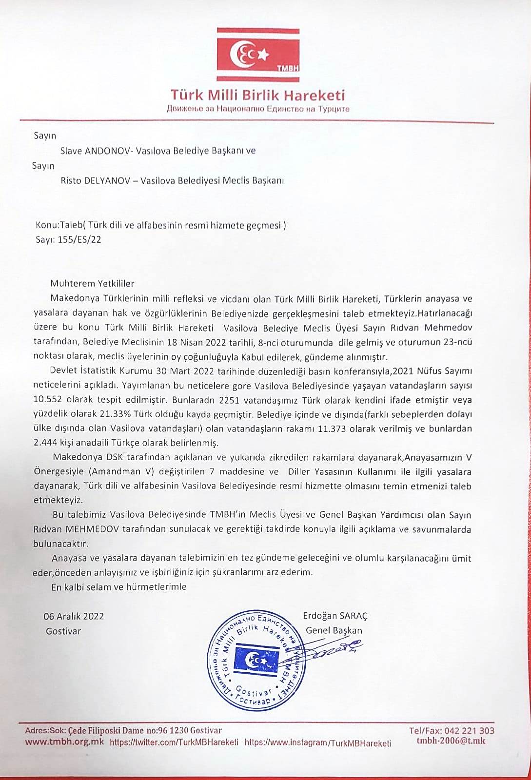 • Годишен  Извештај За Движење на Нациоанлно Единство на Турците ДНЕТ